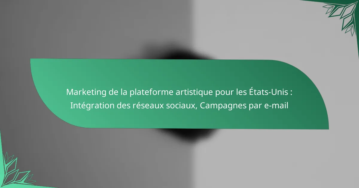 Dans le paysage concurrentiel du marketing des plateformes artistiques aux États-Unis, l’intégration des réseaux sociaux est cruciale pour augmenter la visibilité et favoriser l’engagement du public. En utilisant des campagnes d’email ciblées en parallèle avec des stratégies sur les réseaux sociaux, les artistes et les galeries peuvent efficacement présenter leur travail, se connecter avec leur public et générer du trafic vers leurs plateformes. L’utilisation des bons outils et techniques peut considérablement améliorer l’interaction des utilisateurs et les taux de conversion.