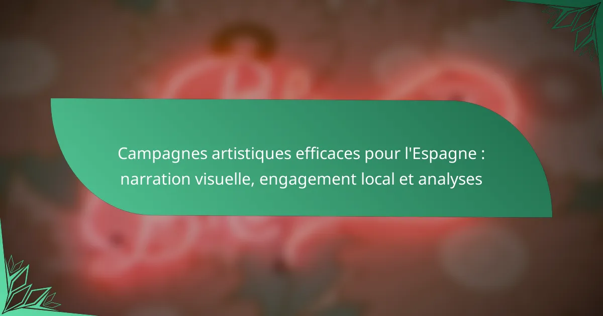 Créer des campagnes artistiques efficaces en Espagne implique un mélange de narration visuelle, d’engagement local et d’analytique des données. Ces éléments travaillent ensemble pour résonner avec les publics et maximiser l’impact.