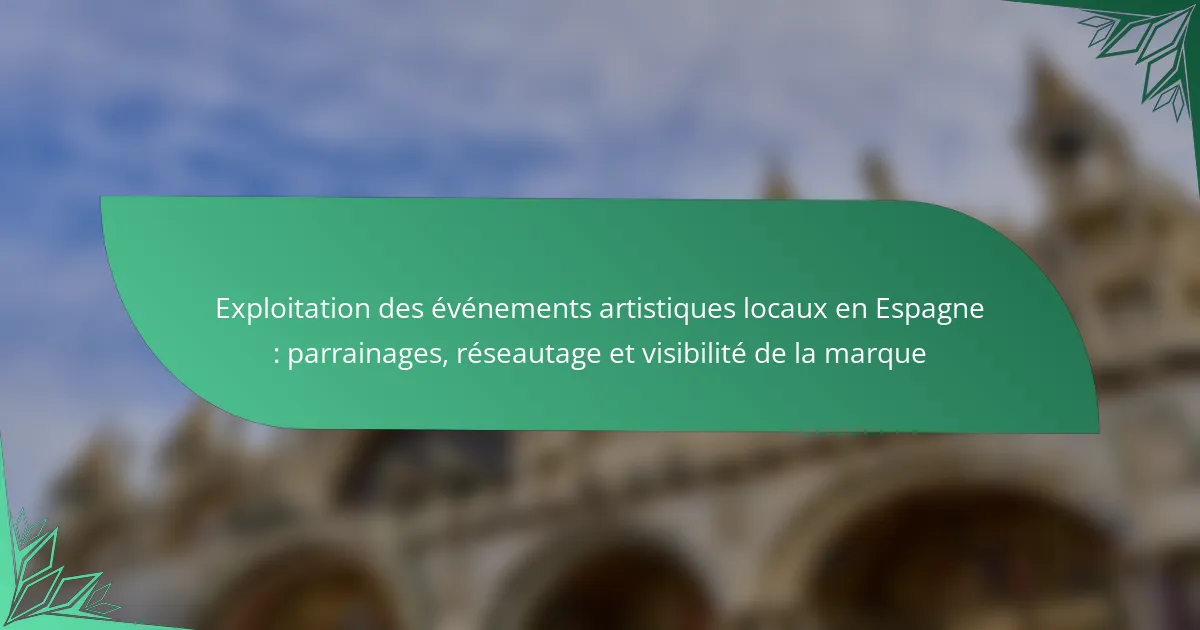 Exploiter les événements artistiques locaux en Espagne représente une opportunité unique pour les marques d’améliorer leur visibilité et de favoriser les connexions communautaires. En sponsorisant ces événements, les marques peuvent interagir avec des démographies cibles spécifiques, créant des interactions significatives qui renforcent la fidélité et la reconnaissance. Une sélection soigneuse des événements qui s’alignent sur les valeurs de la marque et les intérêts du public peut encore amplifier l’exposition et le potentiel de mise en réseau.