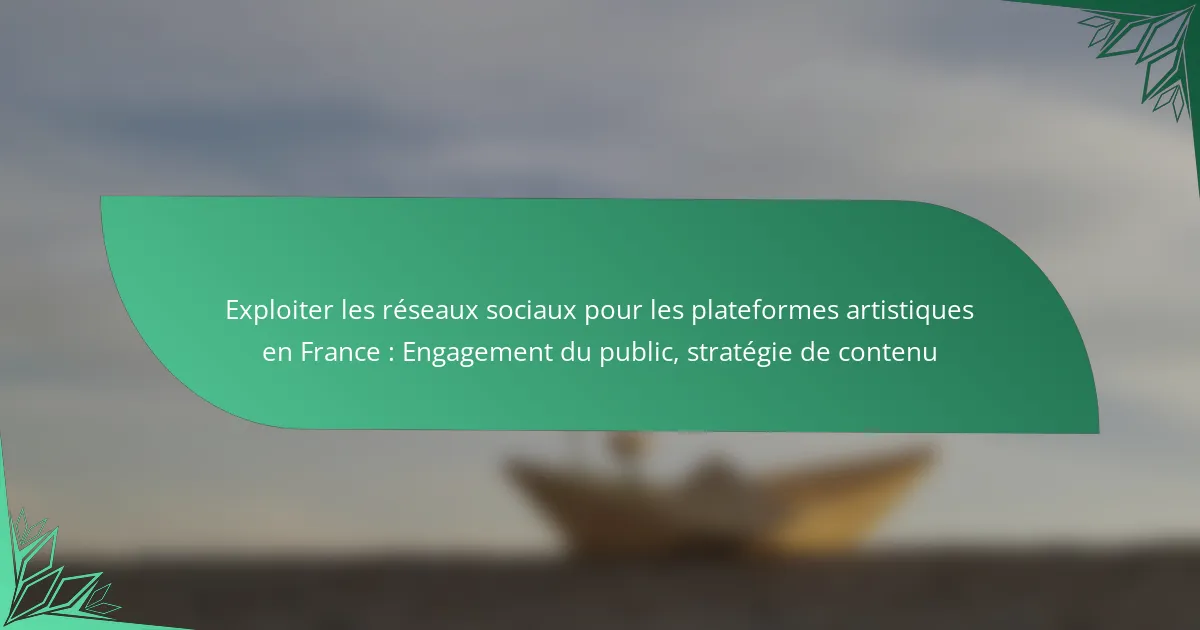 Exploiter les réseaux sociaux pour les plateformes artistiques en France nécessite une approche stratégique pour l’engagement du public et la création de contenu. En se concentrant sur du contenu interactif, des contributions générées par les utilisateurs et des collaborations avec des artistes locaux, les plateformes peuvent favoriser des connexions significatives au sein de la communauté artistique. L’utilisation de plateformes populaires comme Instagram et TikTok, ainsi qu’une publication régulière et un storytelling captivant, améliorent la visibilité et construisent une présence en ligne dynamique.