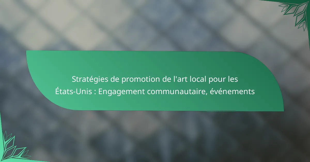 La promotion de l’art local aux États-Unis prospère grâce à l’engagement communautaire et à des événements dynamiques qui connectent les artistes avec les résidents. En organisant des foires d’art, des ouvertures de galeries et des promenades artistiques communautaires, ces stratégies non seulement mettent en valeur le talent local, mais favorisent également une appréciation plus profonde des arts au sein de la communauté. L’utilisation des réseaux sociaux amplifie encore ces efforts, créant une plateforme vibrante pour l’interaction et le soutien entre les passionnés d’art.