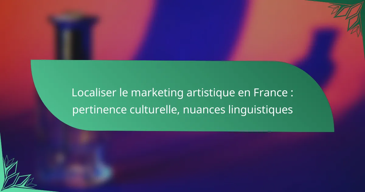 Pour localiser efficacement le marketing artistique en France, il est essentiel de comprendre le contexte culturel, les nuances linguistiques et les préférences régionales. Adapter votre approche pour résonner avec le public local améliorera l’engagement et stimulera les ventes.