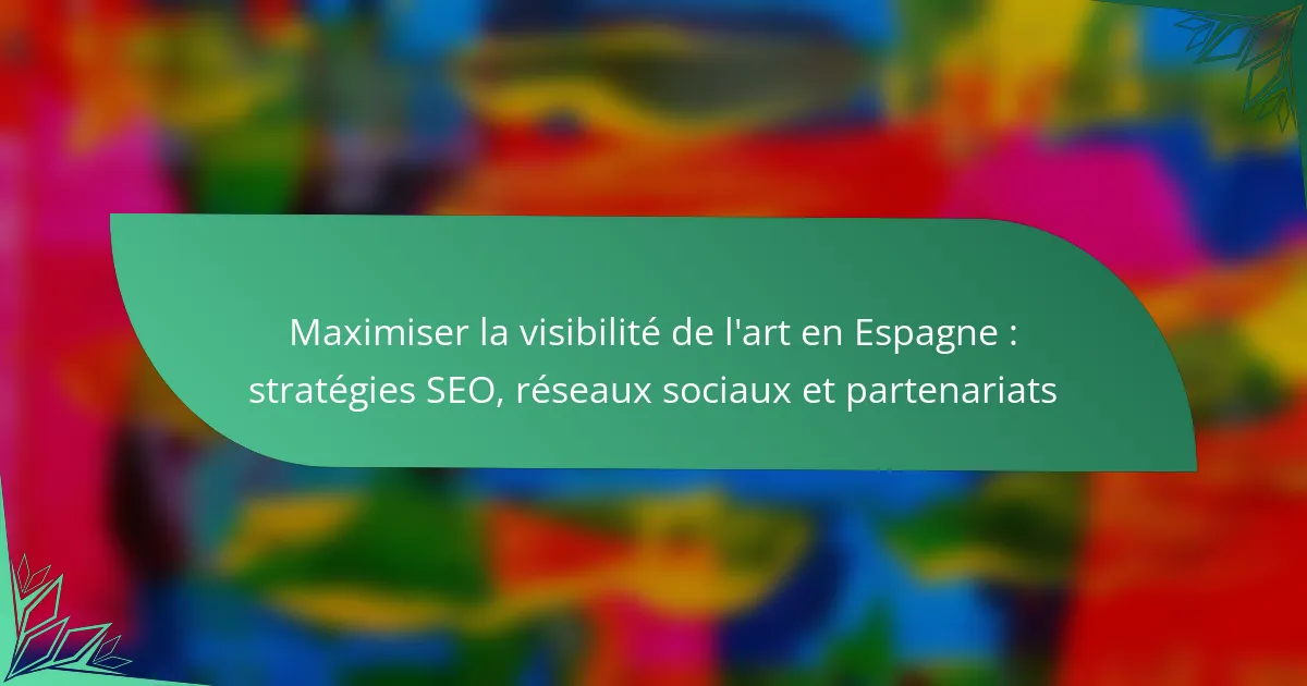 Pour maximiser la visibilité de l’art en Espagne, concentrez-vous sur la mise en œuvre de stratégies SEO efficaces, l’utilisation des plateformes de réseaux sociaux et la formation de partenariats avec des entités locales. Ces approches amélioreront votre présence en ligne et vous connecteront à un public plus large.