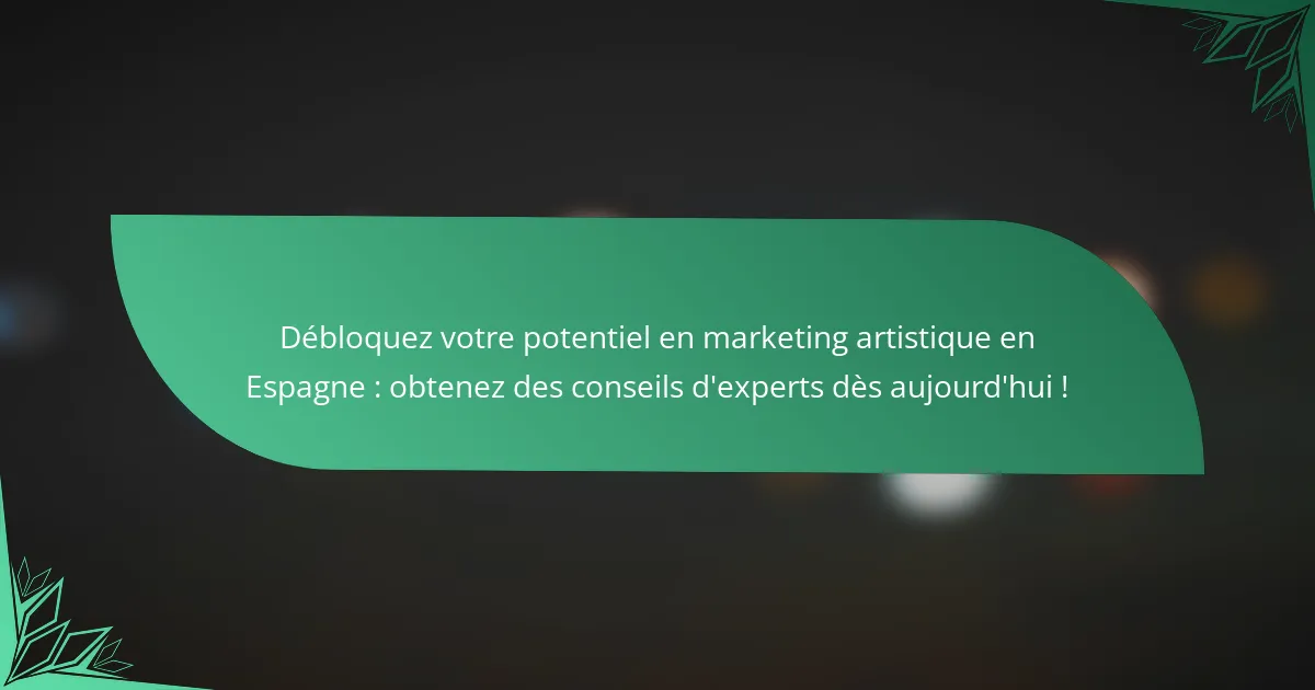 Déverrouillez votre potentiel de marketing artistique en Espagne en exploitant la puissance des plateformes numériques et de l’engagement communautaire. En mettant en œuvre des stratégies ciblées telles que la sensibilisation sur les réseaux sociaux, les collaborations locales et un marketing de contenu efficace, vous pouvez considérablement améliorer votre visibilité et vous connecter avec des acheteurs potentiels. Découvrez des conseils d’experts aujourd’hui pour naviguer sur le marché artistique compétitif espagnol et élever votre présence artistique.